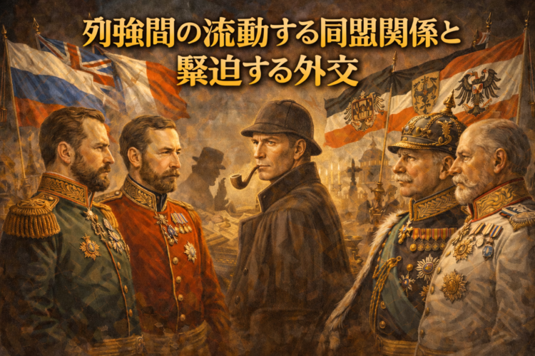 このようなヨーロッパの外交関係は、コナン・ドイルやアガサ・クリスティの作品にも背景として現れます。外交文書の盗難、秘密条約、国際的な陰謀などは、実際のヨーロッパ外交の緊張を反映したものです。