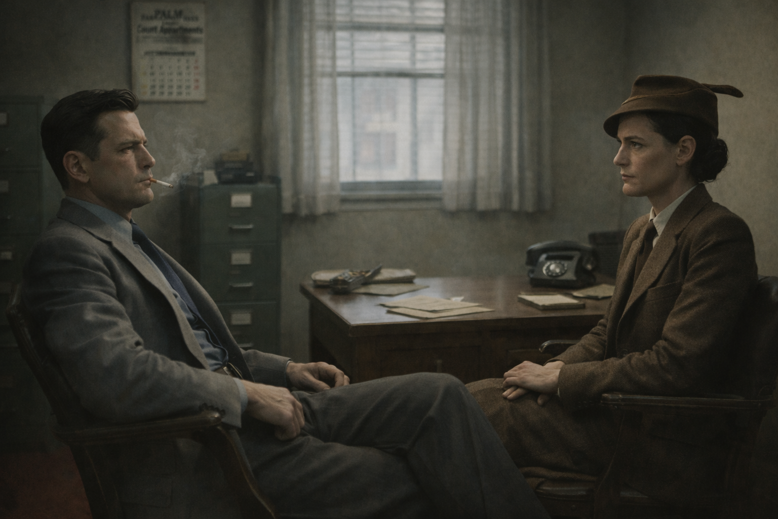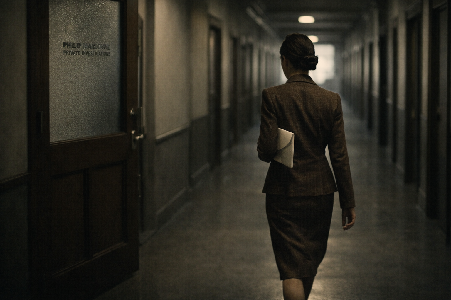 現代の宅配便やバイク便に相当します。1930年代のロサンゼルスでは自転車や車で書類や小包を届けるサービスが一般的でした。差出人が誰かを特定されたくない場合に使うことも多く、この場面では脅迫状と写真を匿名で届けるために使われています。