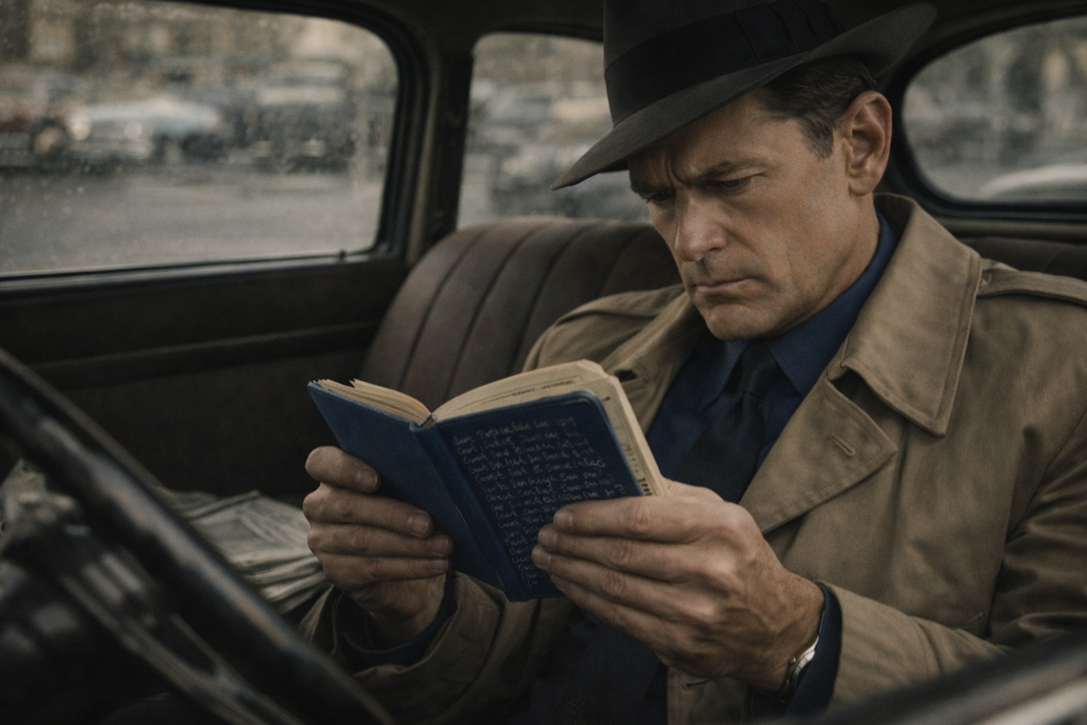 そういう|聞き方を|してくれると|助かる。||嘘を|つかずに|断れる。||お互い|挨拶を|して、|私は|事務所を|出て、|夕刊を|三紙|全部|買い、|タクシーで|司法庁舎へ|向かい、|駐車場から|車を|出した。||どの|新聞にも|ガイガーの|ことは|なかった。||青い|手帳を|もう一度|見たが、|暗号は|前夜と|同じく|頑として|解けなかった。