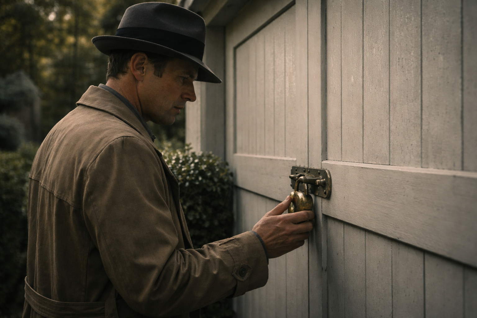ガイガーの|家の|前にも|通りのどこにも|人の|気配は|なかった。||箱形の|生垣は|緑に|平和に|見え、|屋根の|板瓦は|まだ|湿っていた。||ある考えを|噛みながら|ゆっくり|通り過ぎた。||前夜、|ガレージを|調べていなかった。||ガイガーの|死体が|消えてからは、|正直|見つけたくなかった。||見つければ|行動を|迫られる。||だが|死体を|ガレージまで|引きずって|自分の|車に|乗せ、|ロサンゼルス|周辺の|人気のない|百以上の|峡谷の|どこかに|捨てれば、|何日|も|何週間も|見つからない。||それには|二つの|条件が|いる。||車の|鍵と、|二人一組|であること。||捜索範囲が|かなり|絞られる。||特に|ガイガーの|個人的な|鍵を|あの夜|私が|ポケットに|入れていたのだから。