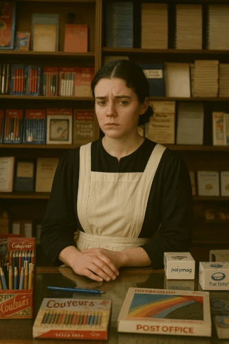 A travers les petits carreaux verts, on devinait dehors des têtes curieuses qui, parfois, se collaient aux vitres. La fille de salle fut une demi-heure absente, le temps de dîner à son tour. Puis elle reprit sa place habituelle à droite de la caisse, un coude sur celle-ci, une serviette à la main.