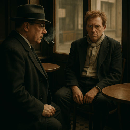 Il pleuvait. Les rues étaient pleines d’une boue noire. Le vent agitait les persiennes du premier étage. Maigret avait dîné dans la salle à manger, non loin de la table où le docteur s’était installé, funèbre.