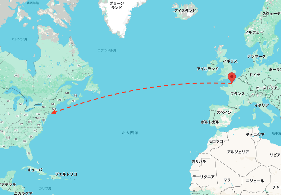 さて、|出航から|二日目、|フランスの|岸を|五百マイルも|離れて、|嵐に|なりそうな|午後の|ことだった。