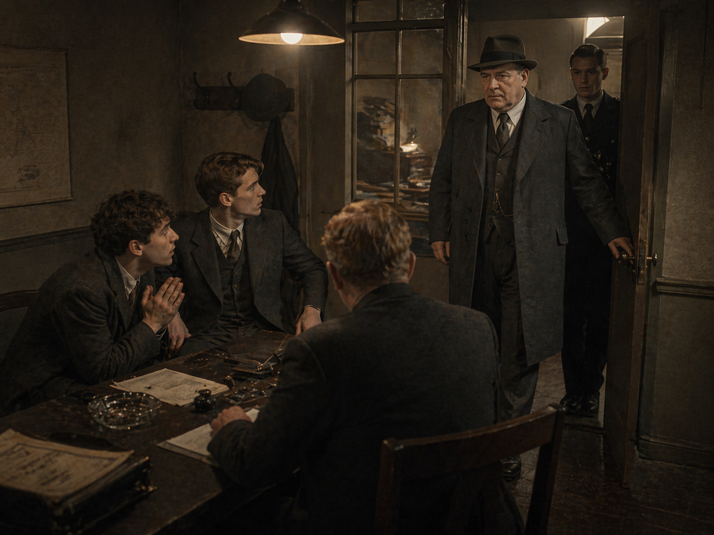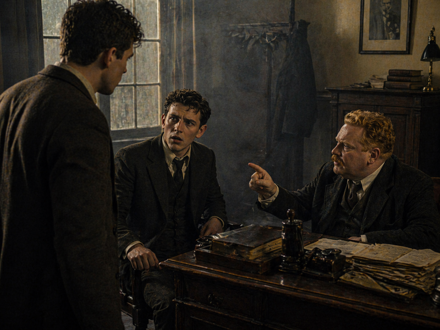メグレは|無意識に|ポケットから|パイプを|取り出した。||だが|火は|つけなかった。||彼は|途方に暮れ、|何を|すべきか、|何を|言うべきかも|わからずにいる|若者たちを|見つめていた。||警部デルヴィーニュは|立ち上がり、|彼らを|外へ|押し出さねば|ならなかった。||
