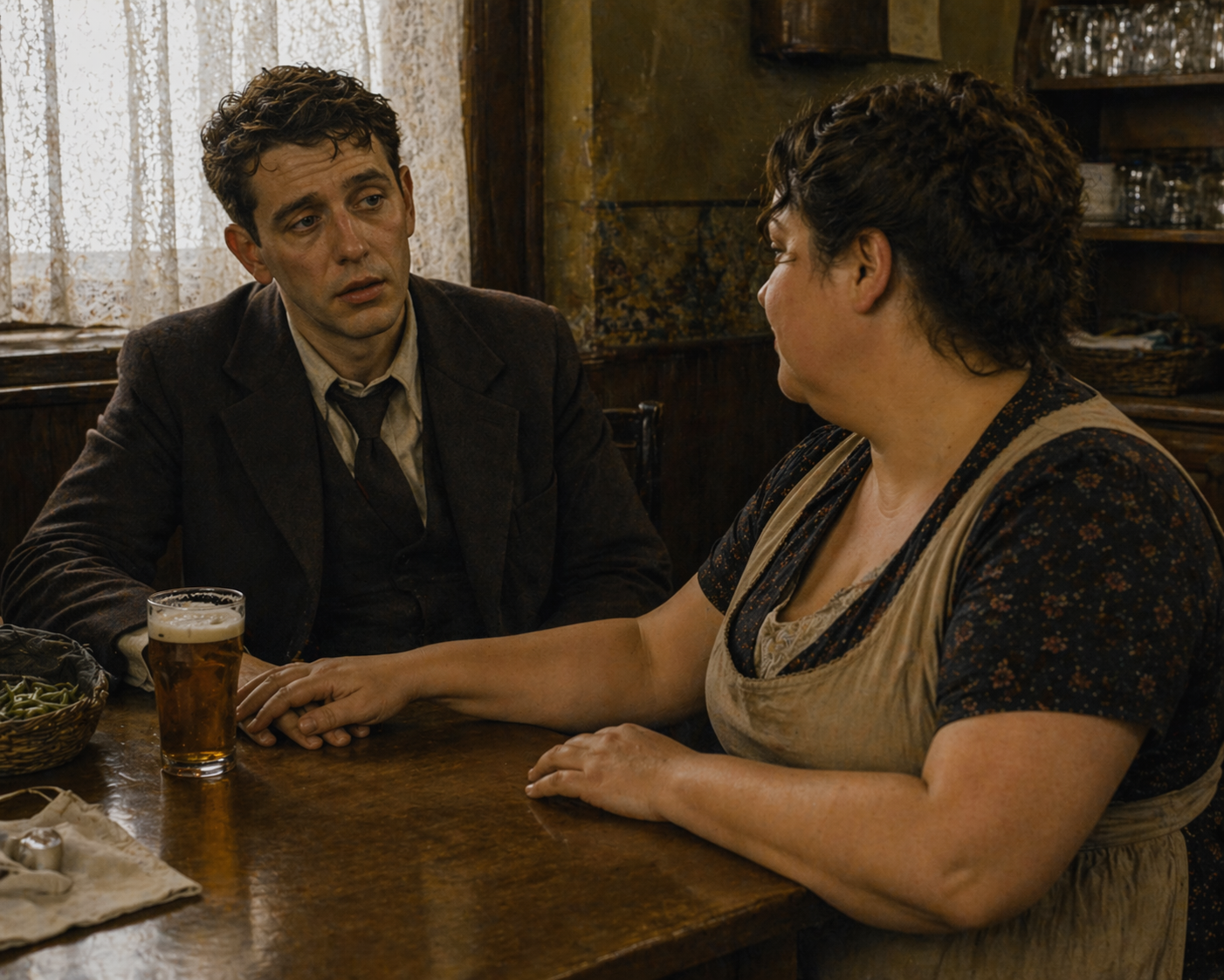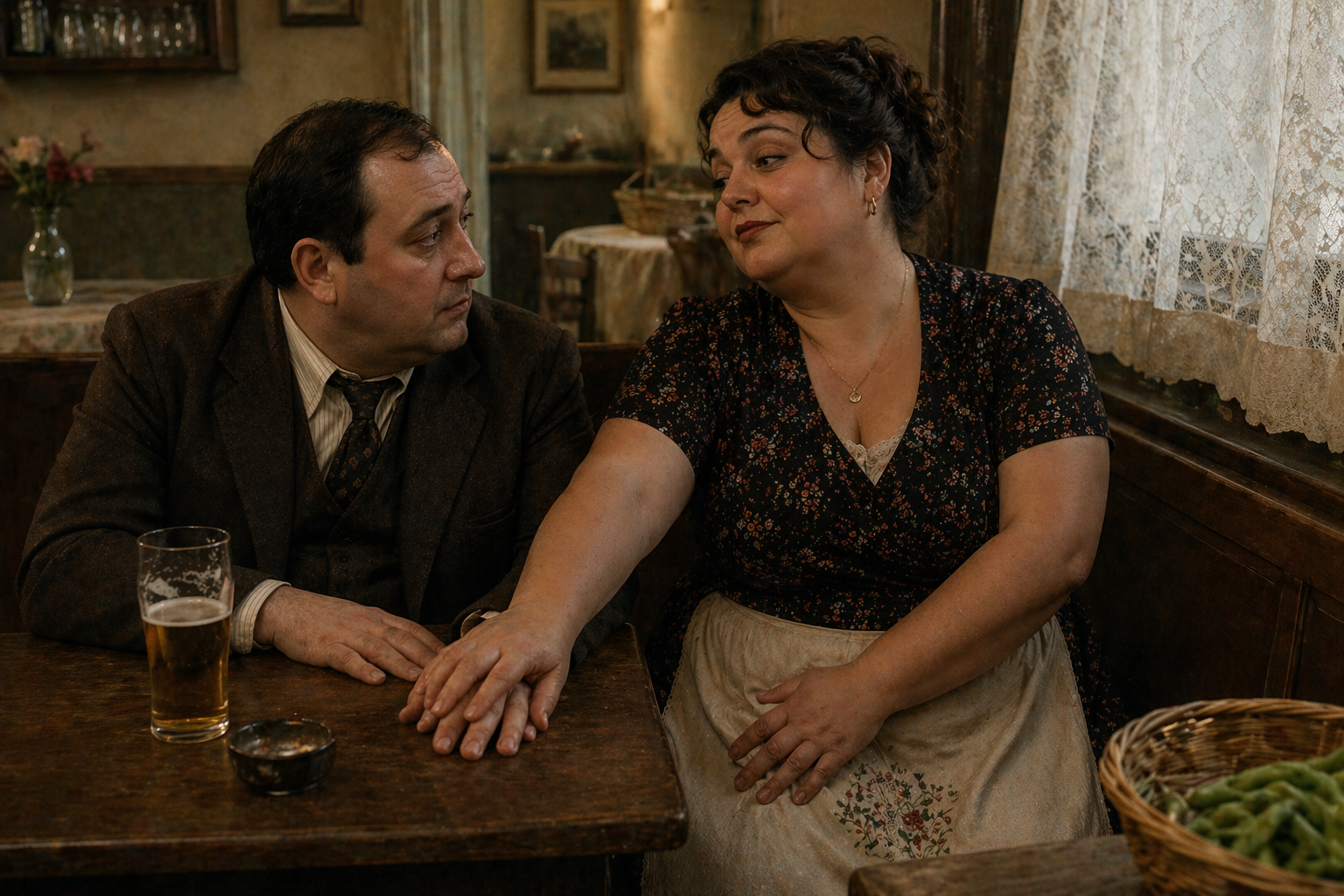 「店の|主人よ。|私は、|ただの|ウェイトレス、|気をつけて……|見られるわよ」