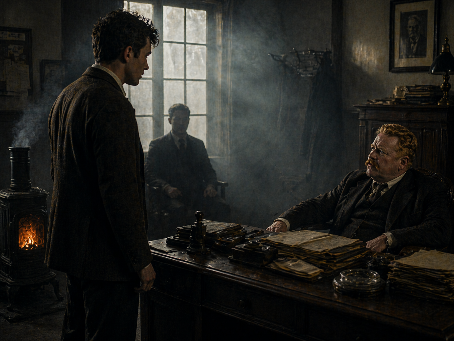 小さな|執務室に|立つ|メグレは、|ひどく|大きく|見えた。||だが、|口を|開いたときに|聞こえてきたのは、|かすかな、|とても|柔らかい|声だった。