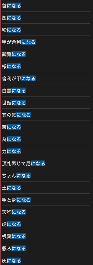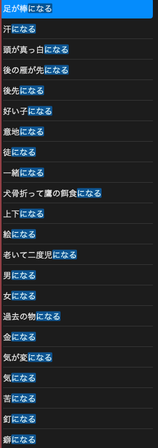 - 単独では連語ではないが、前の語に続くと連語となる場合が多い。