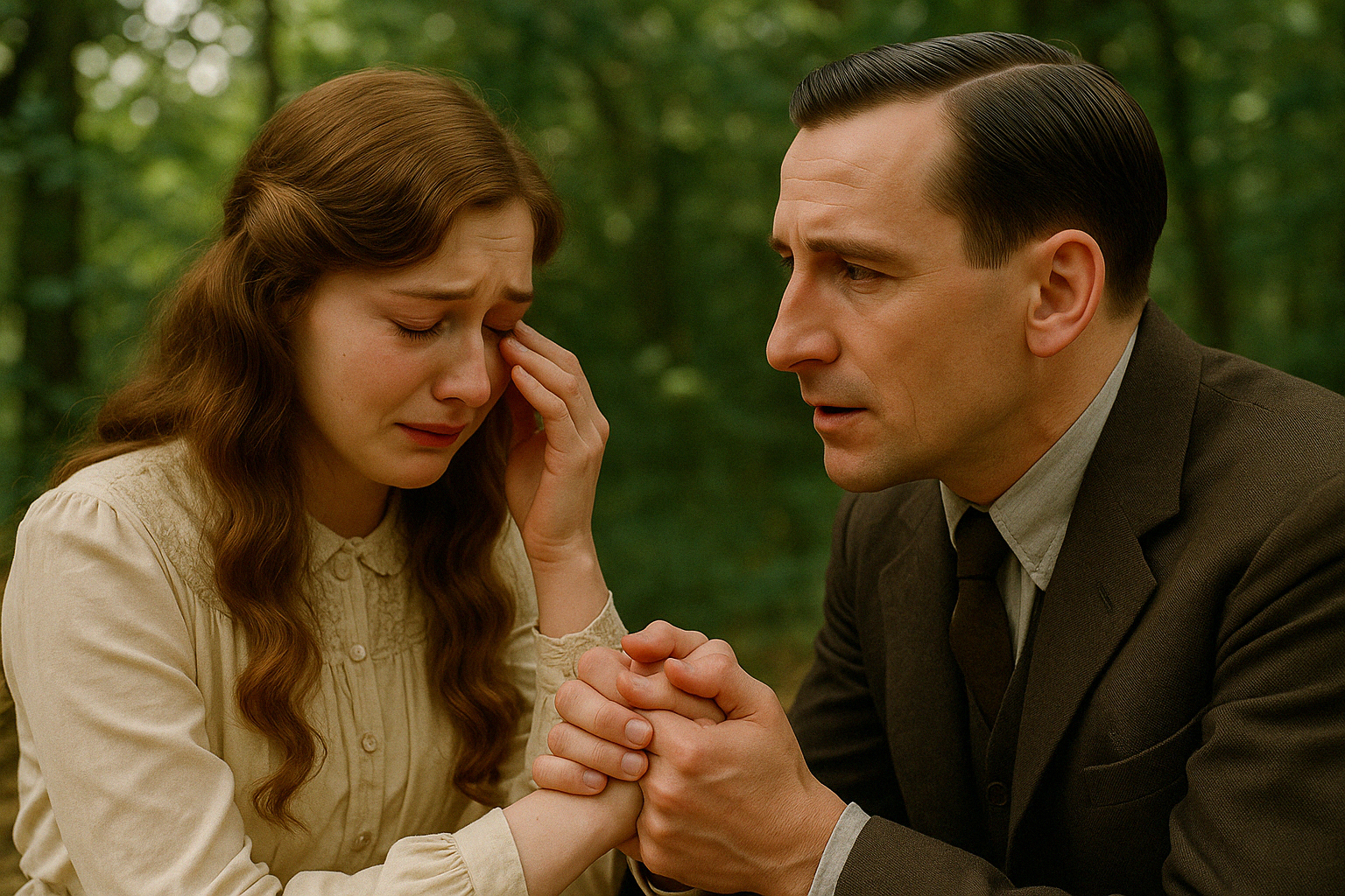 ヘイスティングスはシンシアに頼まれて、美しい森の中を二人で散歩をしながら、シンシアの相談に乗っている。