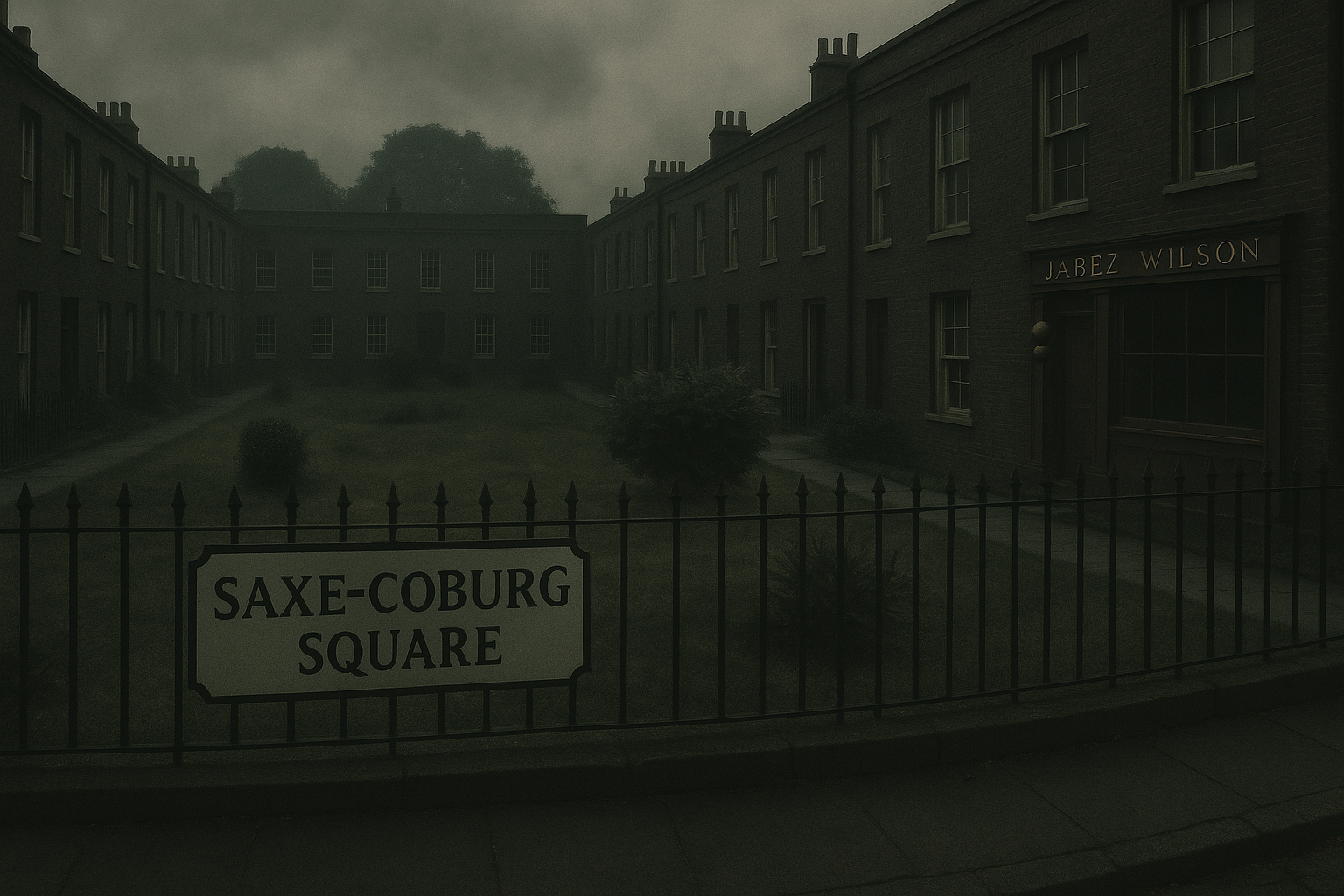 2. コバーグ・スクエア(Coburg Square) は、『赤毛連盟』に登場する架空の地名で、ロンドンの地図には存在しないコナン・ドイルが物語用に創作した場所です。