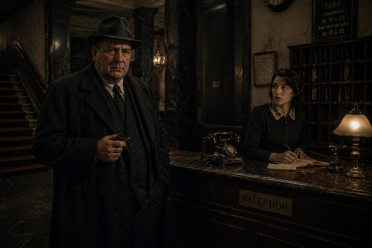 向こうで|デュフォール刑事が|客間に|戻ってきた。