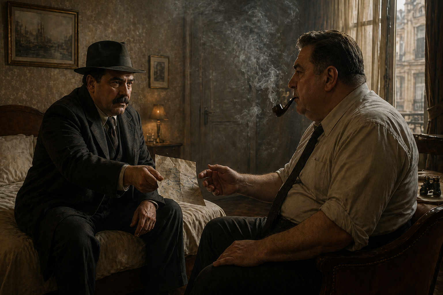 「もちろん。||私も|すぐ|そう|思いました。||カフェで|書かれた|可能性が|高いと|考えて、|モエルスに|聞いてみました。||パリの|ほとんどの|カフェの|便箋を|見分けられると|言っているんです」