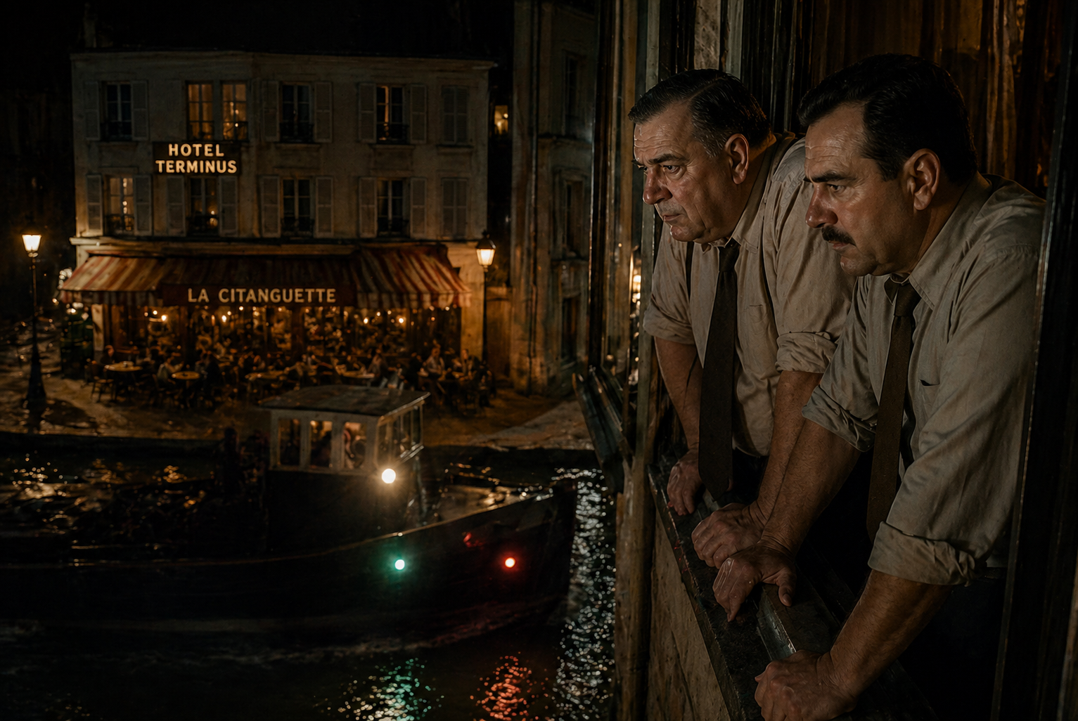特徴的な|細かい|点だが、|刑事は|動く前に|セーヌ川の|方を|振り向き、|上司が|いる|窓の|方向を|一瞥する|必要を|感じた。