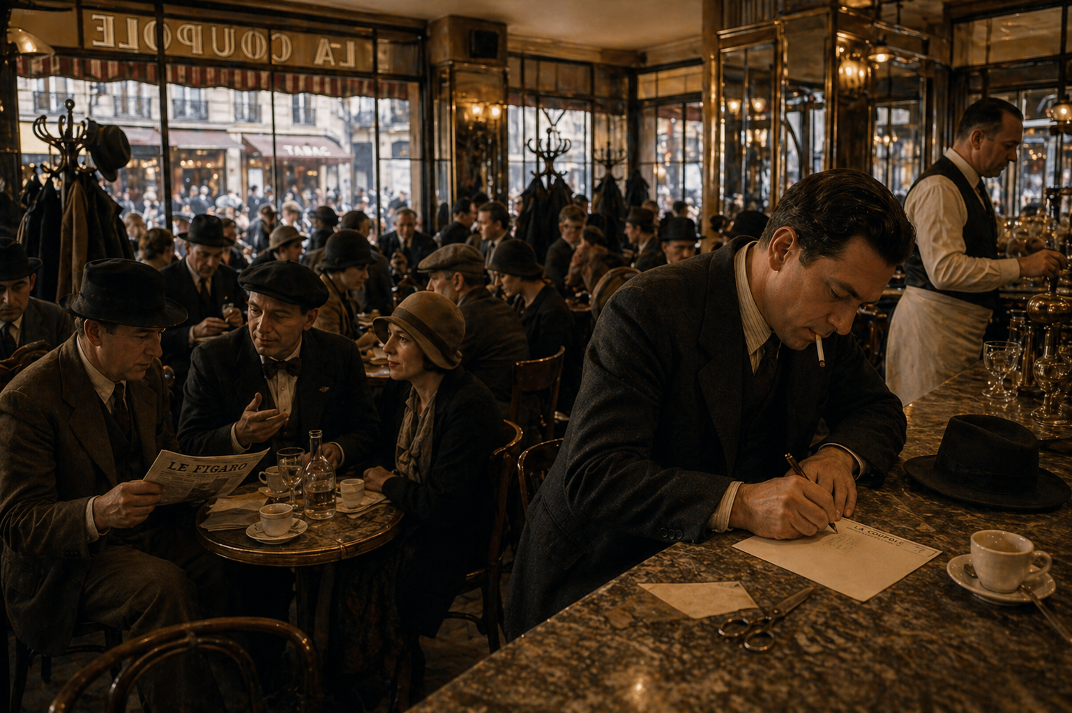 ↩︎ - ラ・クーポールは、パリの|ブールヴァール・モンパルナスに|ある|実在の|有名カフェ・レストランです。1927年に|開業し、|1930年代には|パリの|芸術家や|文人、|知識人たちが|集まる|最も|賑やかな|社交の場の|一つでした。