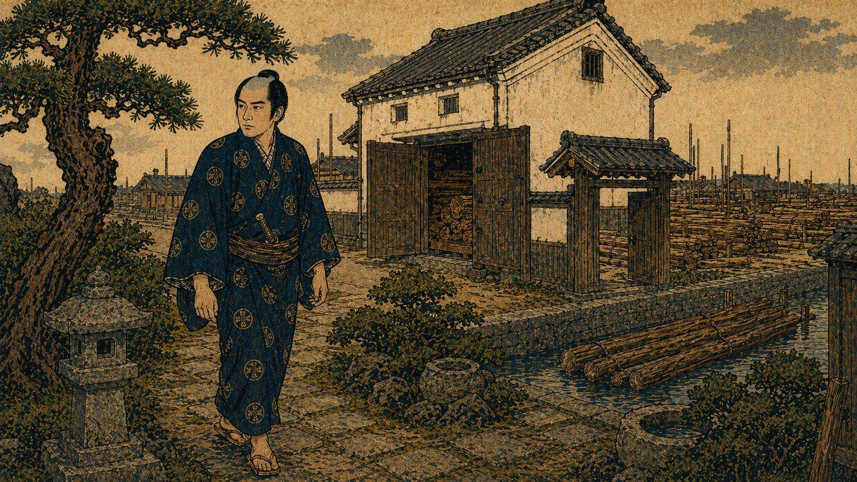 本作の|被害者|甲州屋万兵衛が|「深川木場の|甲州屋万兵衛」と|紹介されているのも、|材木問屋の|大旦那であることを|示しています。||