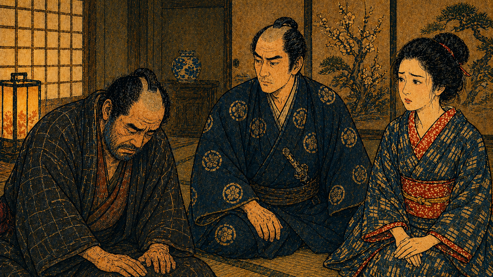 「行儀見習という|名義だ、|――俺の|娘なら、|こんな|家で|行儀なんか|見習って|貰いたくは|ねえよ」