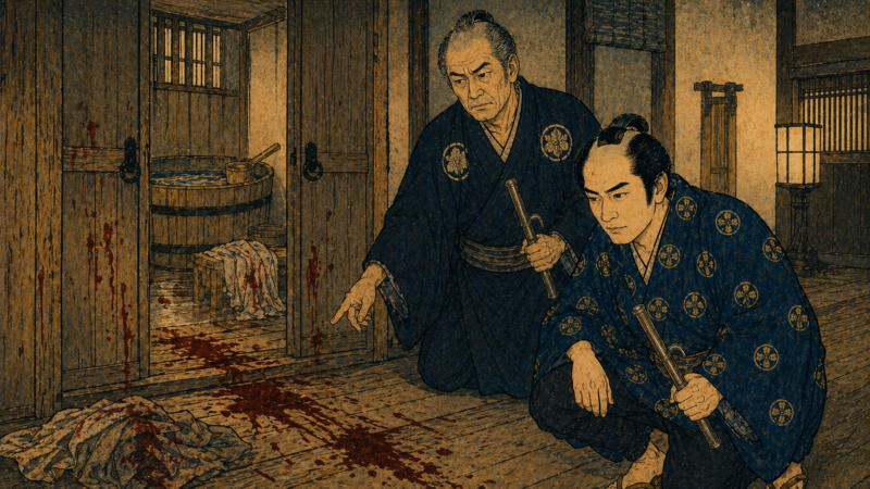 木場の|大旦那で、|万両|分限の|甲州屋|万兵衛は、|今朝、|卯刻半(七時)から|辰刻(八時)までの|間に、|風呂場の|中で|殺されていたのです。